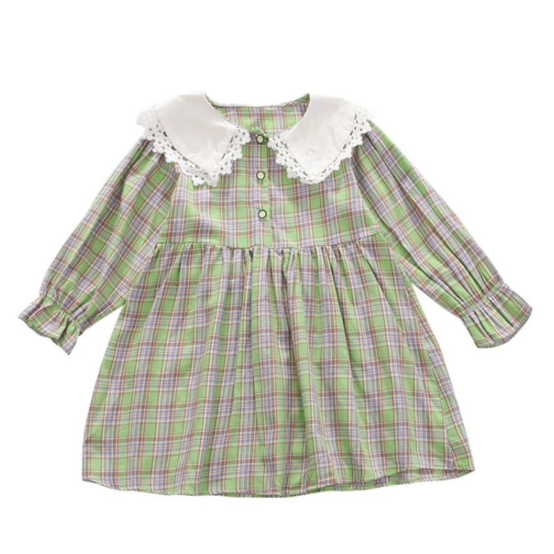 2021 летнее хлопковое модное кружевное лоскутное клетчатое платье для маленьких девочек милые платья в Корейском стиле для девочек с длинным...