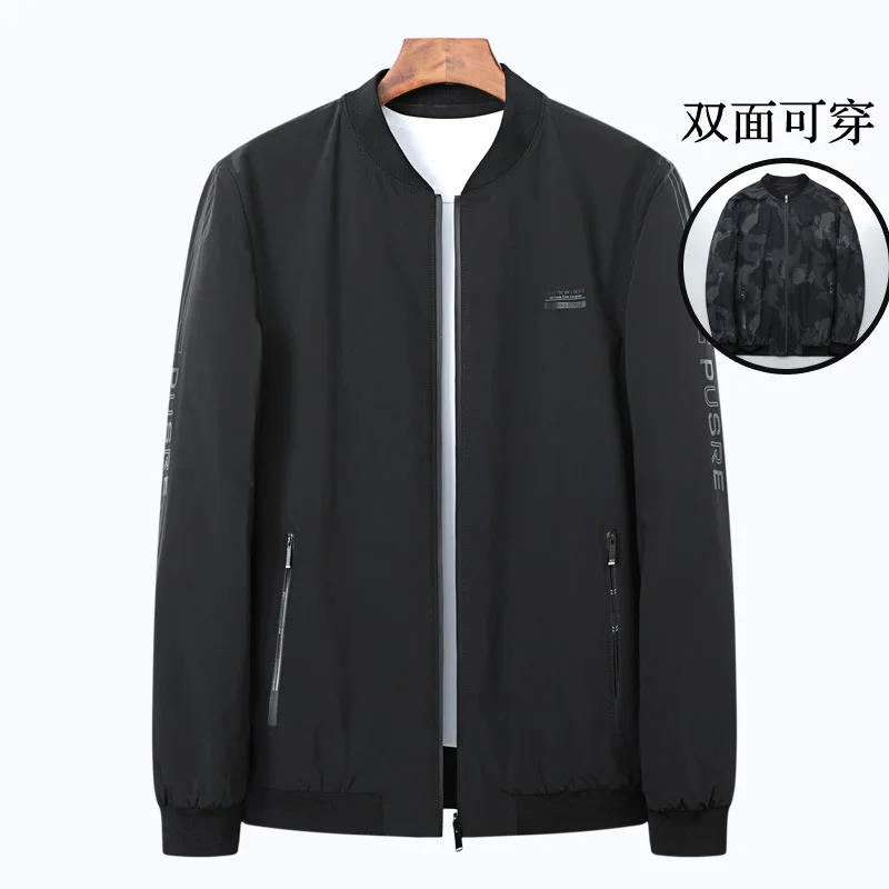 2021 новая весенняя Мужская полнит размера плюс Двусторонняя Бейсбольным воротником Куртка мужская Толстая модная куртка тренд