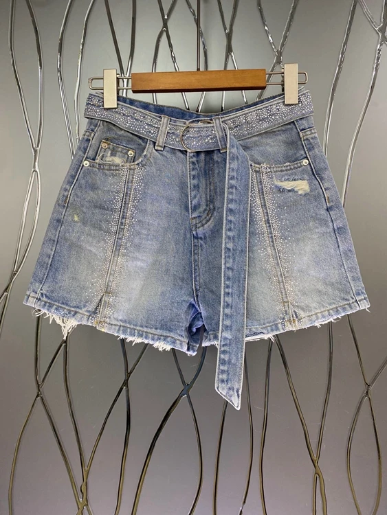 2021 новая женская мода, не требующей горячей Стразы застежка украшения трапециевидной формы все-матч джинсовые шорты повседневные штаны 519
