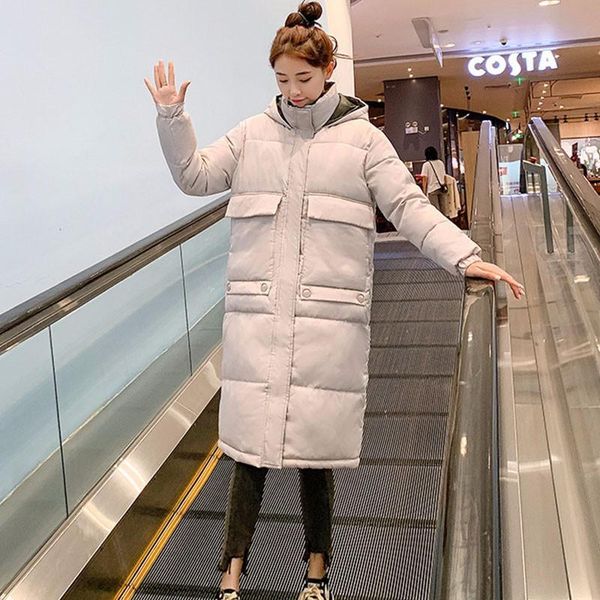 2021 новый autmn зимняя мода сплошная куртка женщины большой меховой воротник длинные парки с капюшоном теплый толщина толщина, Black