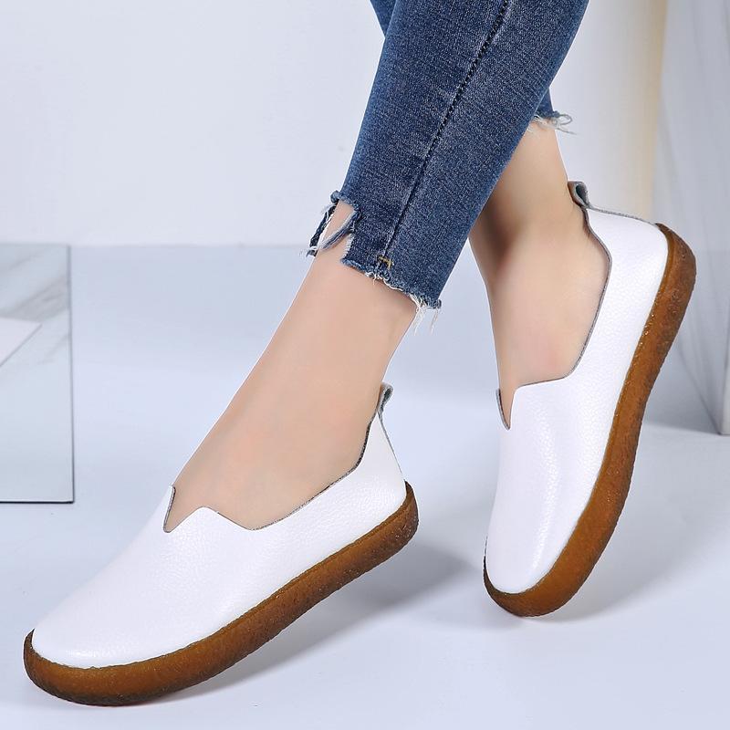 2021 Four Seasons Большой размер КожаНые дамы Одиночная обувь Мода Простая мягкая подошва Плоская повседневная кожаная обувь