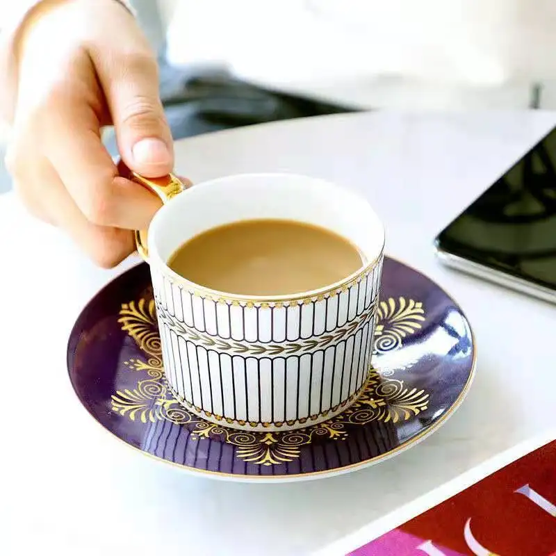 2021 VIP, Прямая поставка, элегантная Золотая кофейная чашка H Mark высшего класса из костяного фарфора, Европейский набор чайных чашек и блюдце д...
