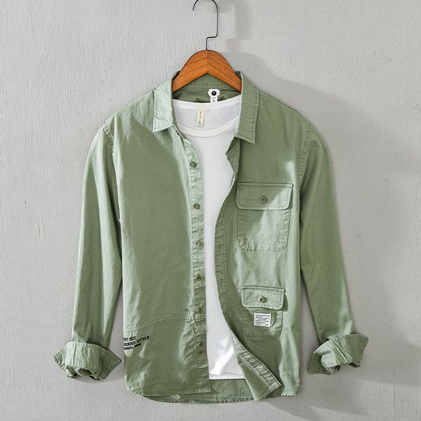 2021 a hundred% spring cotton long pocket coveralls shirts of the men green mark army shirt for casual fashionable chemise men's ktpd, Black