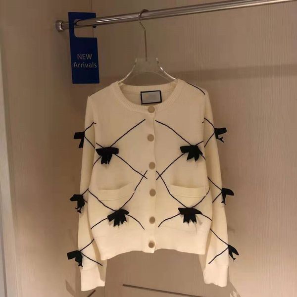 2021 autumn new fashion brand gujia bow embroidery simple, sweet, fresh and comfortable women's cardigan, White;black