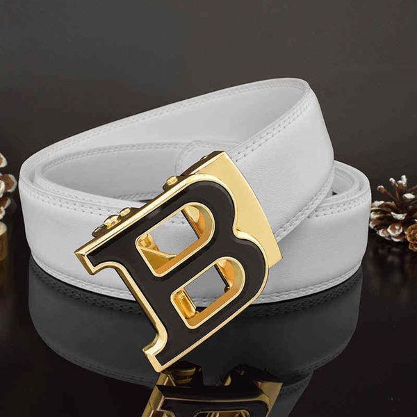 2021 belt men's genuine leather automatic buckle brand casual youth b letter jeans belts for men luxury designer black white y1204308q, Black;brown