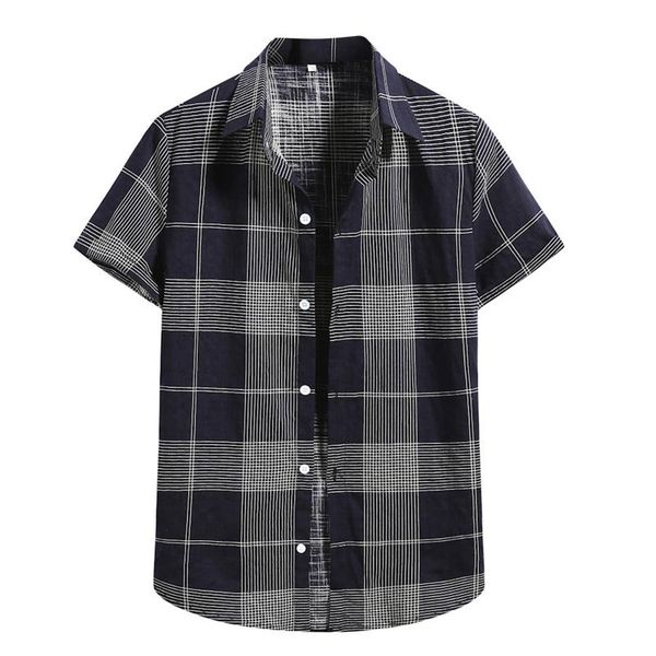 2021 casual plaid short sleeve slim men shirt streetwear social dress shirts summer men button fashion shirt blouse #t2g, White;black