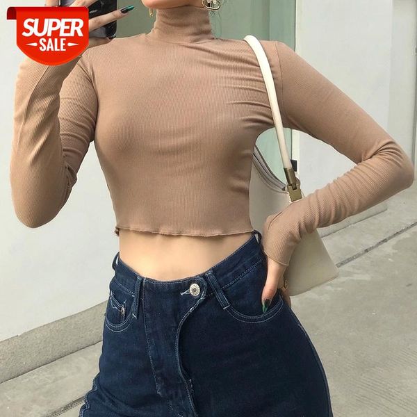 2021 casual slim base t-shirt women's solid color spring autumn long sleeve crop half high collar wild stretch undershirt #ae38, White