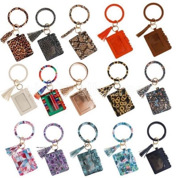 2021 designer bag wallet leopard print pu leather bracelet keychain credit card wallet bangle tassels key ring handbag lady