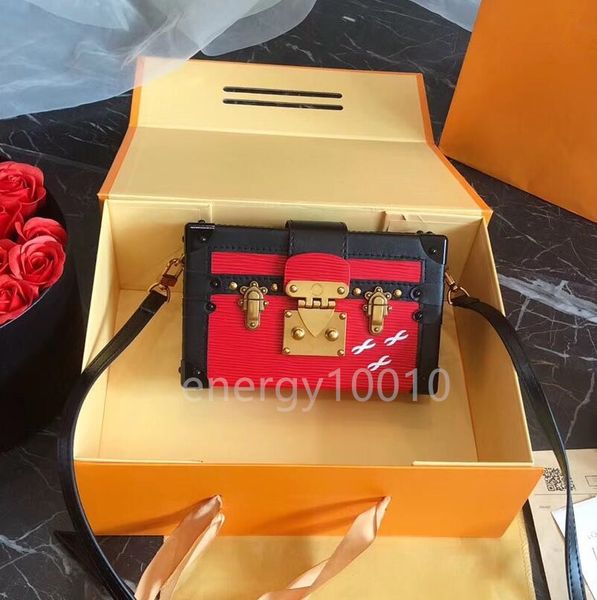 2021 designer box bags womens fashion selling handbag lady new trendy print trunk shoulder girls crossbody bag, Black;red