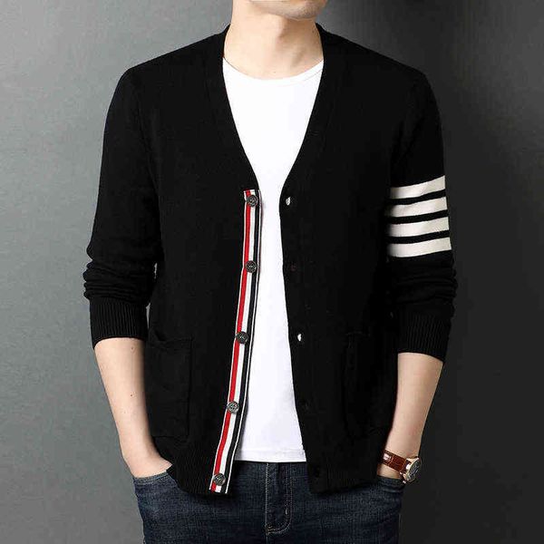 2021 grade new autum winter brand fashion knitted men cardigan sweater black korean casual coats jacket mens clothing s-3xl, White;black
