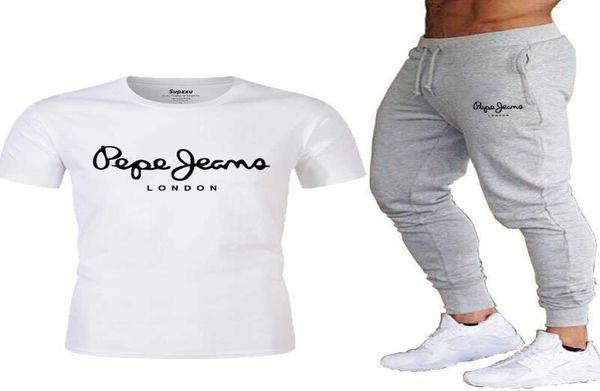 2021 latest pepejeanslondon tshirt summer men039s shortsleeved popular tshirt men039s 2piece suit g09186653690, Gray