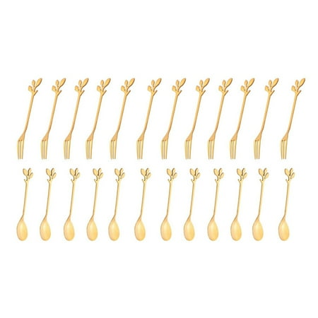 24 Packs of Stainless Steel Fork and Spoon Set Ice Cream Tea Coffee Spoon Tableware Kitchen Tableware