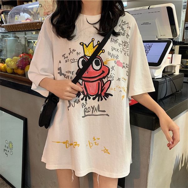 2021 new black white orange frog prince harajuku graphic t shirt tees short sleeve loose kawaii tshirt women korean clothes kp8b