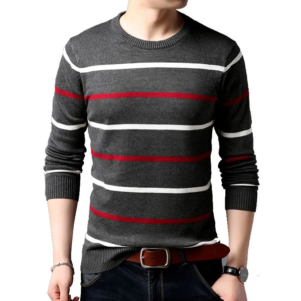 2021 new brand fashion slim sweaters striped o-neck long business pullovers sweater for men clothes xe7z, White;black
