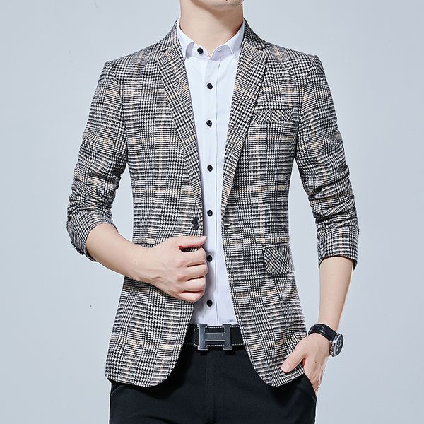2021 new luxury classic men's casual plaid blazer autumn spring fashion brand long sleeves suit pnoe, White;black
