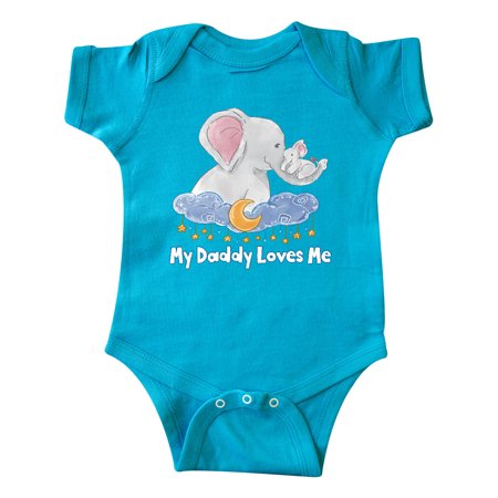 Inktastic My Daddy Loves Me Cute Elephants Clouds Moon and Stars Gift Baby Boy or Baby Girl Bodysuit
