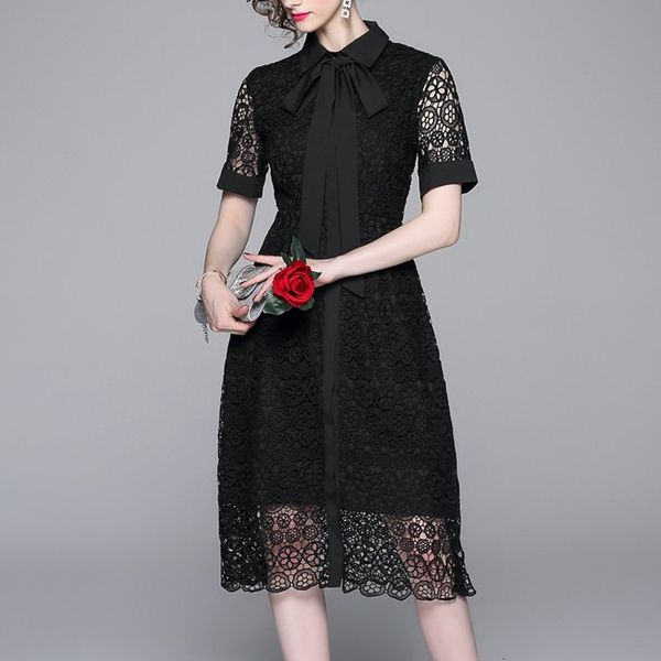 2021 new short sleeve hollow out black lace vestidos mujer verano women party dress steampunk vetement femme gwuz, Black;gray