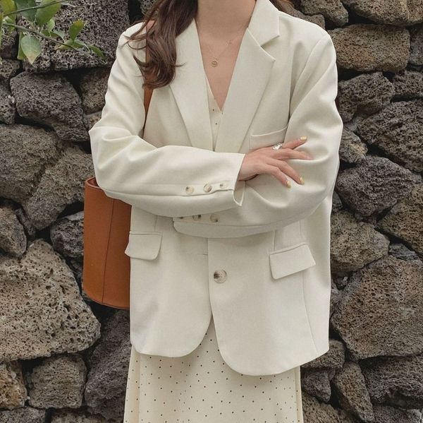 2021 new spring and autumn color sheer leisure simple lapel straight sleeve female suit tongle coat dwp4, White;black