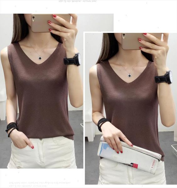 2021 new tanks women fashion summer knitted vest t shirts tank solid cotton sleeveless camisole womens vestido, White