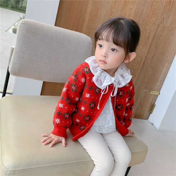 2021 new winter fashion red fashion sweater coat new childrens jacket baby girl clothes christmas jacket for girls suit 1-6 age, Blue;gray
