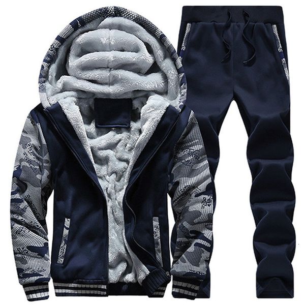 2021 new winter fleece hoodies men sweatshirts male hoody pants set men's jackets coats hooded casual mens tracksuits zipper hoddies ig, Black