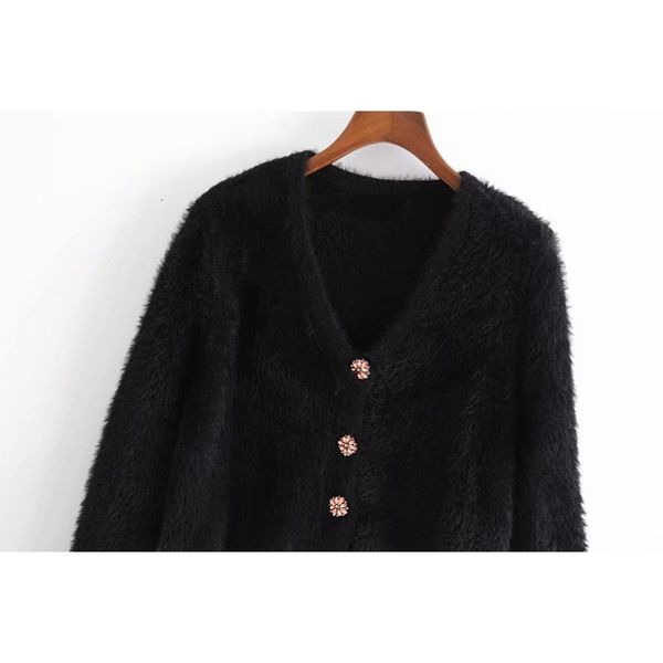 2021 new woman cardigan sweater black faux fur winter button jacket coat fashion v-neck short cardigans s294, White;black