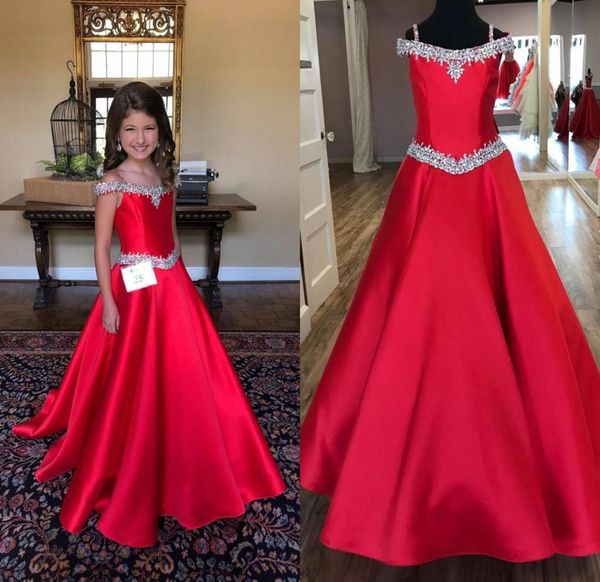 2021 red satin girls formal dresses teens off the shoulder rhinestones open back aline flower for wedding pageant party dress4020271, White;blue