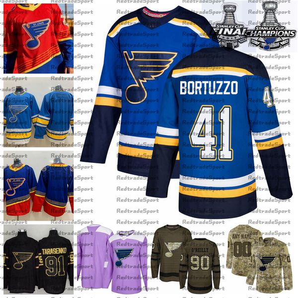 2021 reverse retro customize 41 robert bortuzzo st. louis blues champions hockey jersey golden edition camo veterans day fights cancer, Black;red