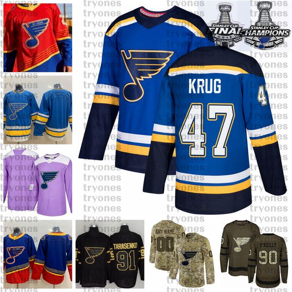 2021 reverse retro customize 47 torey krug st. louis blues champions hockey jersey golden edition camo veterans day fights cancer jersey, Black;red