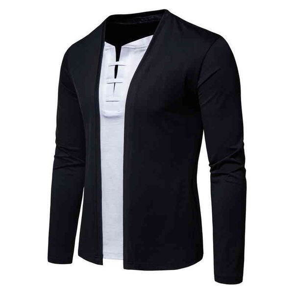 2021 spring and autumn new men's leisure leave two piece pullover t-shirt long sve slim fit t-shirt men, White;black