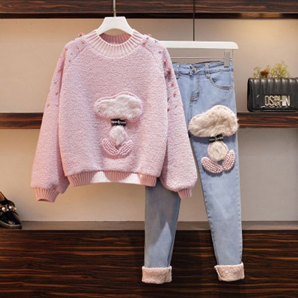 2021 spring chic winter beautiful two girls'ensemble new high-style curly fleece denies long pants ml582 voi0, Gray