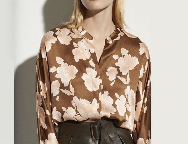 2021 spring and summer new women stand-up collar single-breasted commuter heing korean printing long-sleeved shirt w2y7, White