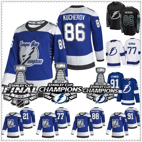 2021 stanley cup champions steven stamkos jersey tampa bay lightning 2020 champions johnson point palat kucherov hedman mcdonagh vasilevskiy, Black;red