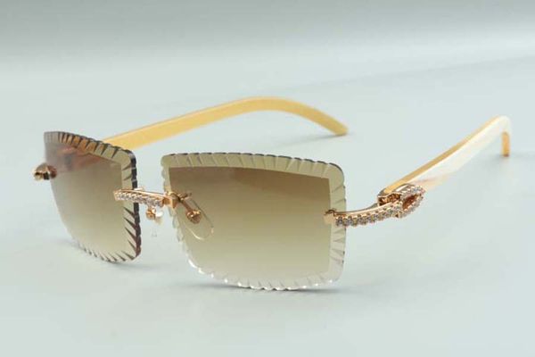 2021 style direct sales cutting lens medium diamonds sunglasses 3524021, natural buffalo horn temples glasses, size: 58-18-135mm, White;black
