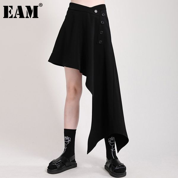 [eam] high elastic waist black ruffles asymmetrical button half-body skirt women fashion spring summer 1dd7505 21512