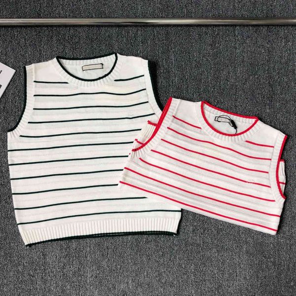 2021 summer new g family embroidered letter pullover contrast stripe round neck knitted sleeveless vest top, White