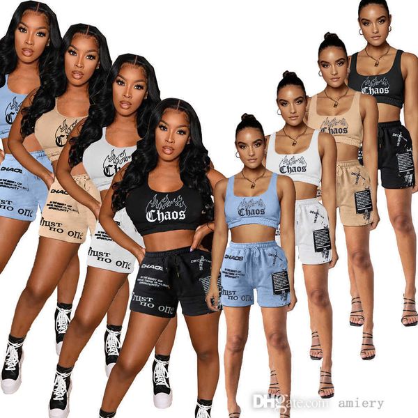 2021 summer women two piece pants tracksuits designer vest shorts outfits fashion letter printed casual sportswear plus size, Gray