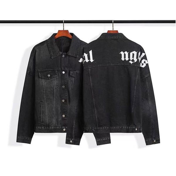 2021 trendy angel logo jacks letter back printing wash old denim jacket monochrome classic style support mass customization m--xl851, Black;brown