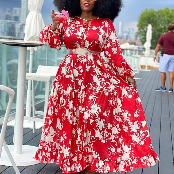 20214xl 5xl plus size african dress women red floral print long sleeve floor length large elegant evening party vestidos dress maxi, Black;gray