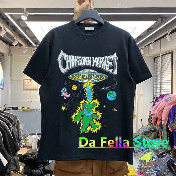 2021ss men's t-shirts little bear t shirt men women heavy fabric tee alien invasion style short sleee t230302, White;black