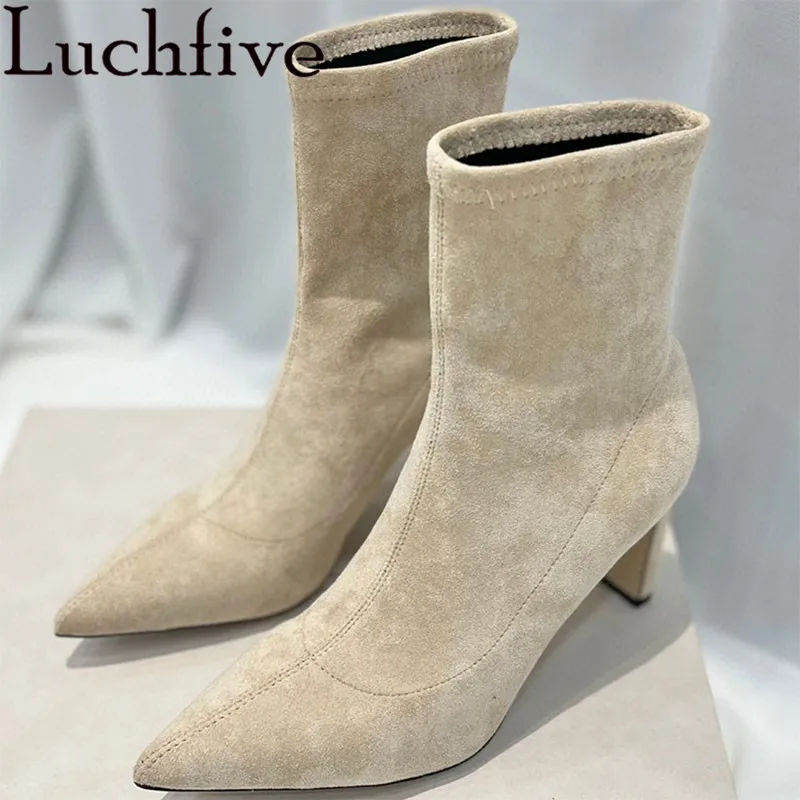 2022, Детские замшевые длинные сапоги на высоком каблуке, с острым носком