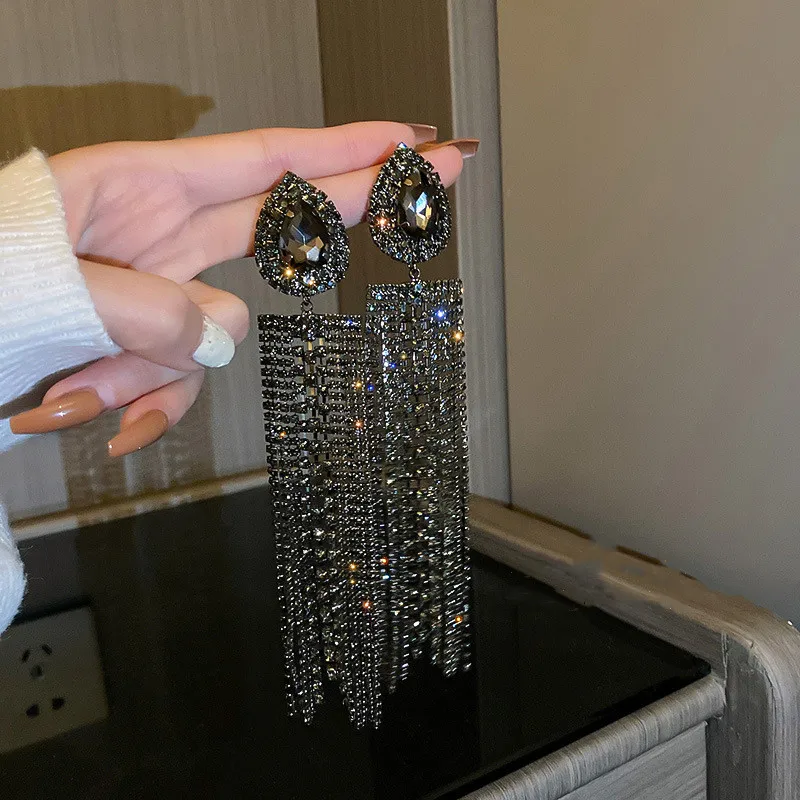 2022 Европа и Америка новые преувеличенные Стразы длинные висячие серьги с кисточками для женщин эффектные ювелирные изделия для вечеринки с...