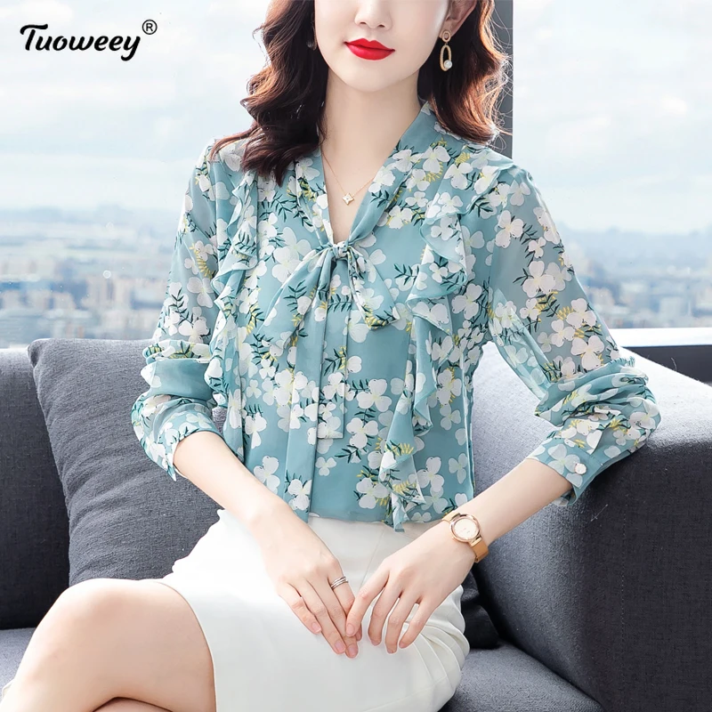 2022 Летние Стильные Новые женские топы с коротким рукавом, шифоновые женские рубашки с рюшами, Женские топы и блузки с цветочным узором, женс...