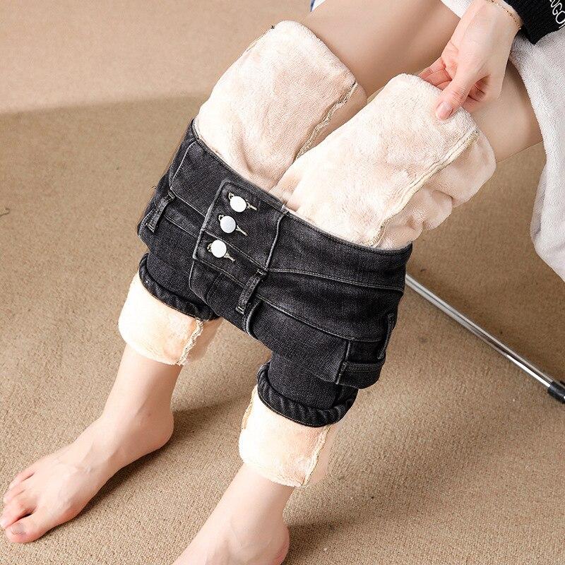 2022 Осень Зима Джинсы Повседневная Мода Skinn Джинсы Для Женщин Высокая Талия Эластичные Узкие Брюки Плотные Теплые Зауженные Узкие Брюки 32 серый
