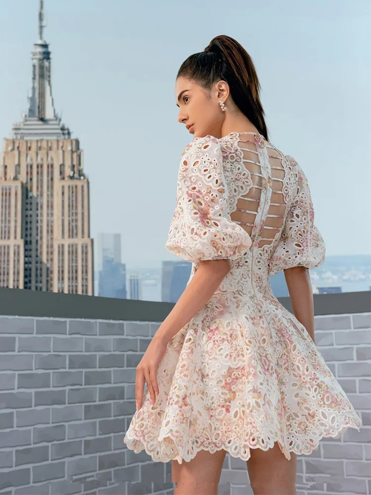 2022 Сексуальное Женское Платье с открытой спиной с цветочным принтом и коротким рукавом, милое праздничное платье для отпуска