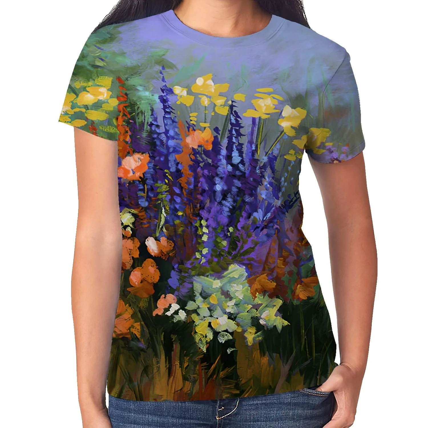 2022 женская футболка с цветочным принтом, повседневные дизайнерские топы с круглым вырезом в уличном стиле