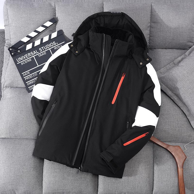 2022 зимняя уличная теплая куртка-пуховик для молодых мужчин с капюшоном на белом утином пуху, модная теплая куртка в Корейском стиле 4XL чёрный