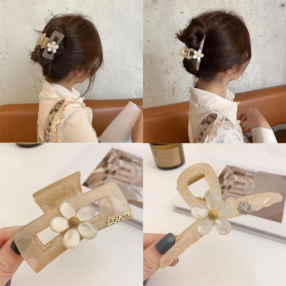 2022 корейские новые женские пластиковые заколки для волос, элегантные золотые заколки для волос с цветами, заколка-Пряжка, Шпилька для волос,...