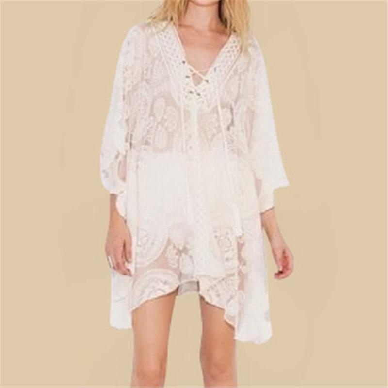 Тренд 2022 - пляжная туника из кружева One Size белый