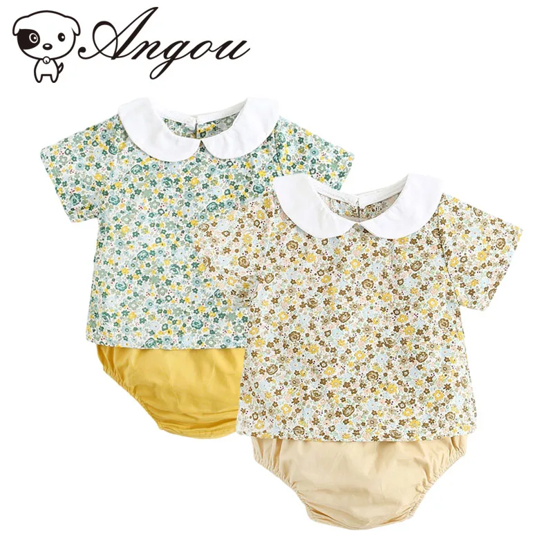 2022 летний цветочный костюм для маленьких девочек, одежда, милый цветочный отворот, короткие рукава + брюки, одежда для маленьких девочек из 2 ...
